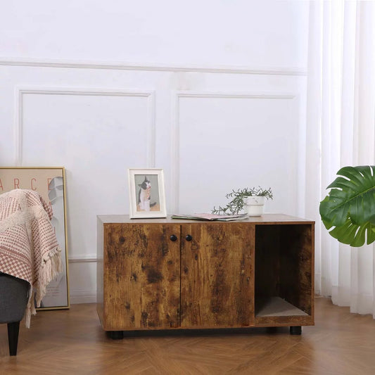 "Elegant Large Cat Litter Box Enclosure: Stylish Furniture Solution in Brown (35.8 x 20.47 x 19.88 inches)"